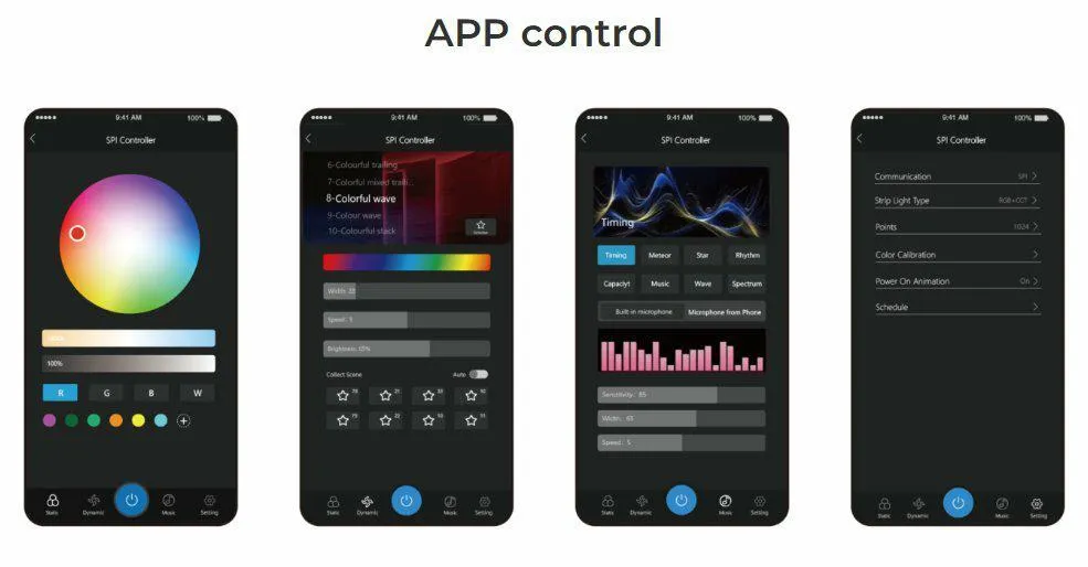 Dynamické efekty a široké možnosti nastavenia – režimy svietenia, zmena farieb, jas a rôzne dynamické svetelné programy.