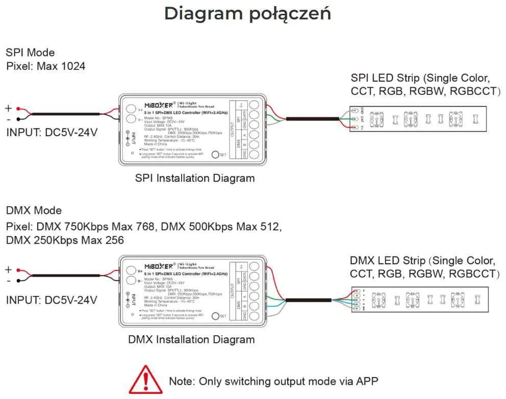 Miboxer SPIW5 – 5v1 WiFi + RF 2.4G ovládač pre digitálne SPI LED pásy a DMX systémy