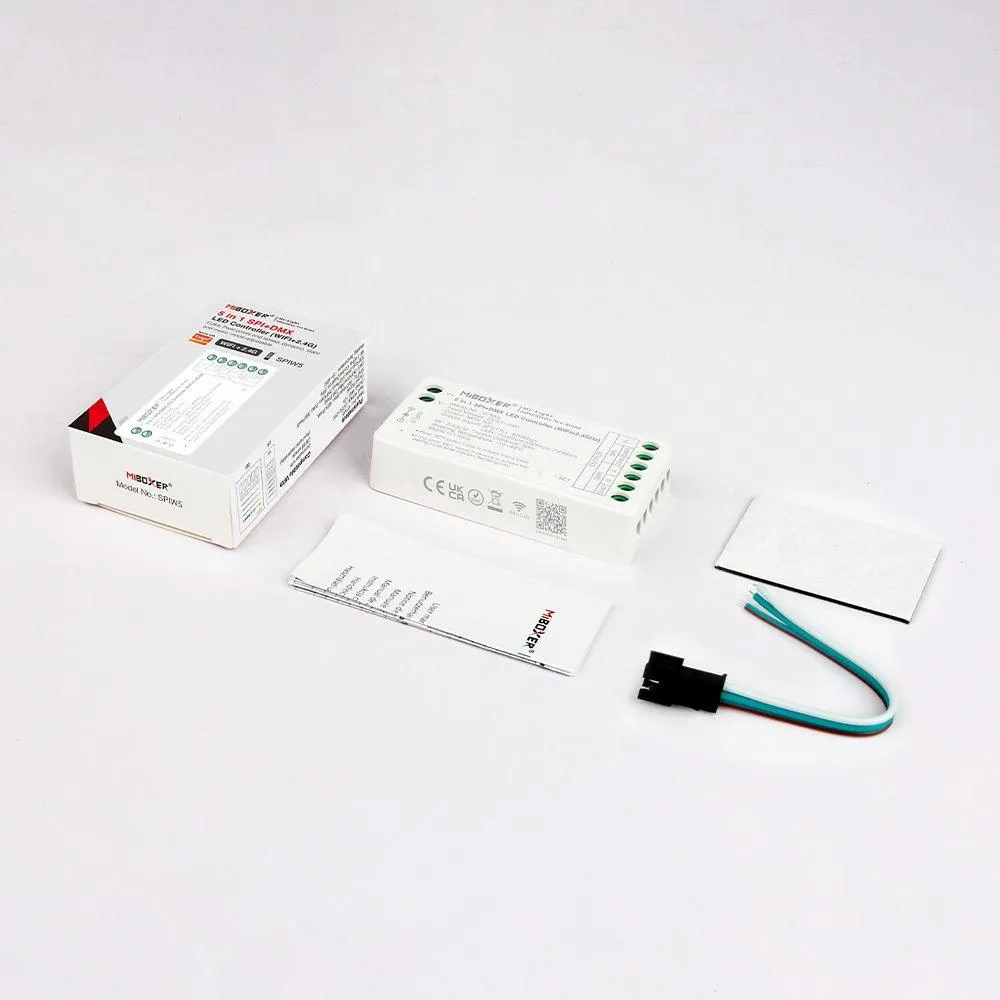 Ovládač Miboxer SPIW5 je univerzálne zariadenie novej generácie určené na ovládanie digitálnych LED pásov (Magic Pixel) aj DMX osvetlenia. Vďaka kombinácii WiFi a 2,4 GHz RF technológie umožňuje pohodlné a flexibilné ovládanie svetelných efektov pomocou mobilnej aplikácie alebo kompatibilného diaľkového ovládača. Tento 5v1 ovládač podporuje viacero protokolov SPI aj DMX a je vhodný pre náročné svetelné inštalácie v interiéri.