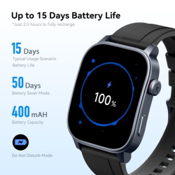 Batéria s kapacitou 400 mAh zabezpečuje výdrž až 15 dní pri bežnom používaní a až 93 dní v pohotovostnom režime. Nabíjanie trvá približne 2,5 hodiny, pričom napájanie prebieha cez 3,7 V vstup.