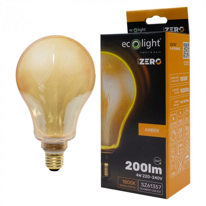 LED žiarovka ZERO SERIES 4W s označením SZ61357 predstavuje elegantné riešenie dekoratívneho osvetlenia, ktoré vytvára príjemnú a teplú atmosféru v interiéri. Vďaka jedinečnému jantárovému sklu a tvaru typu A110 je žiarovka vhodná do viditeľných svietidiel, kde vynikne jej dizajn aj prirodzené, jemné svetlo. Ideálna je do obývacích izieb, spální, kaviarní, reštaurácií, salónov či hotelových lobby – všade tam, kde je dôležitá útulnosť a vizuálny dojem.