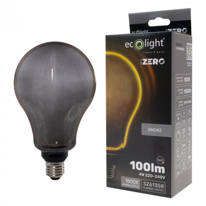 Žiarovka ZERO SERIES 4W E27 A110 Dymová je elegantné osvetlenie, ktoré spája moderný dizajn s teplým a príjemným svetlom. Vďaka veľkému tienidlu z dymového skla pôsobí štýlovo, jemne a vytvára osobitý vizuálny efekt – aj keď je svetlo vypnuté. Ide o ideálnu voľbu pre tých, ktorí hľadajú dekoratívnu žiarovku vhodnú do obývacej izby, spálne, predsiene, ale aj do reštaurácií, barov či kaviarní.