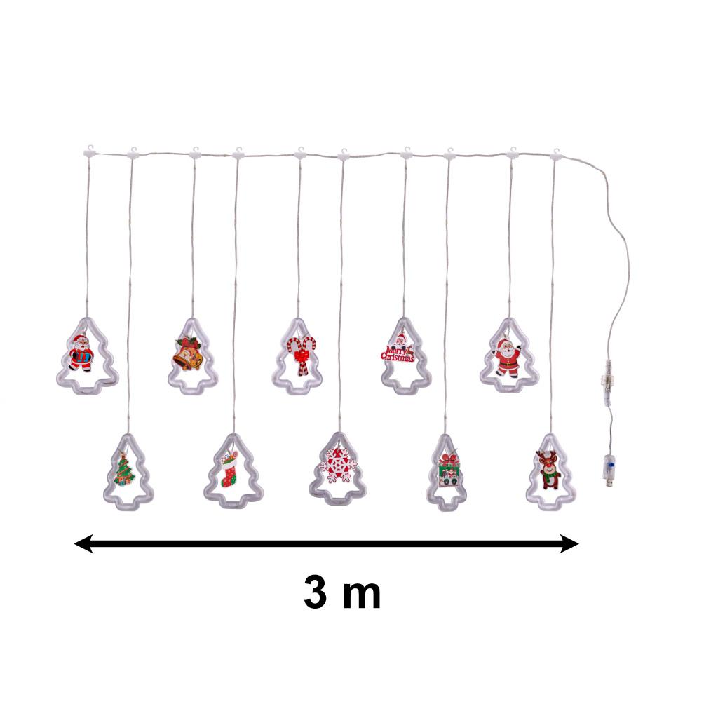 Farebné vianočné figúrky vytvoria originálny a veselý vzhľad, vďaka čomu je tento svetelný záves obľúbenou dekoráciou najmä v rodinách s deťmi.