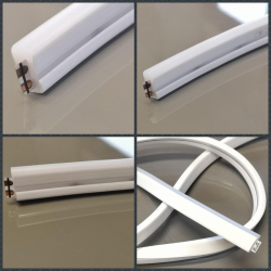 Neón FLEX sa môže strihať výhradne na označených miestach každých 2,5 cm. Na inom mieste by mohlo dôjsť k poškodeniu diód alebo skráteniu funkčnosti.