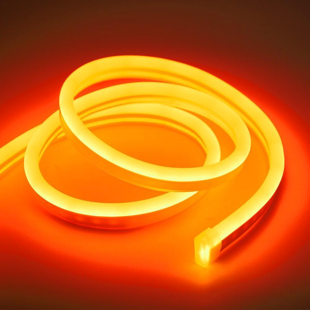 Oranžový Neón FLEX 8x16mm je moderné a veľmi efektívne LED riešenie určené na tvorbu svetelných dekorácií, reklám, nápisov a zvýrazňovanie línií. Vďaka špeciálnej konštrukcii so silikónovým opláštením vytvára krásne, rovnomerné a intenzívne svetlo po celej svojej svietiacej strane. Tento typ neónu je maximálne flexibilný, ľahko tvarovateľný a vhodný pre vnútorné aj vonkajšie použitie (IP65).