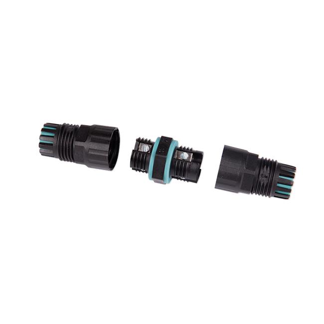 Konektor je vyrobený z odolného plastu PA66 s UV ochranou, čo zabezpečuje dlhú životnosť aj pri dlhodobom vystavení slnečnému žiareniu. Konštrukcia konektora umožňuje pevné a stabilné uchytenie káblov a zároveň zabezpečuje vysokú elektrickú a mechanickú bezpečnosť spoja. Vnútorná svorkovnica je prispôsobená pre tri vodiče, čo umožňuje pripojenie fázového, nulového a ochranného vodiča.