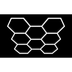 Šesťuholníková LED lampa 8L s výkonom 350W je moderné a vysoko výkonné riešenie osvetlenia určené pre veľké interiérové priestory, kde je kladený dôraz na maximálny svetelný výkon, rovnomerné rozloženie svetla a moderný dizajn. Vďaka charakteristickému hexagonálnemu (včelínovému) tvaru pôsobí lampa mimoriadne atraktívne a zároveň plní funkciu silného pracovného osvetlenia.