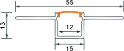 SADA 2m SDK lišta eloxovaná 12mm do sadrokartónu + matná.krytka + 4x ukončenie