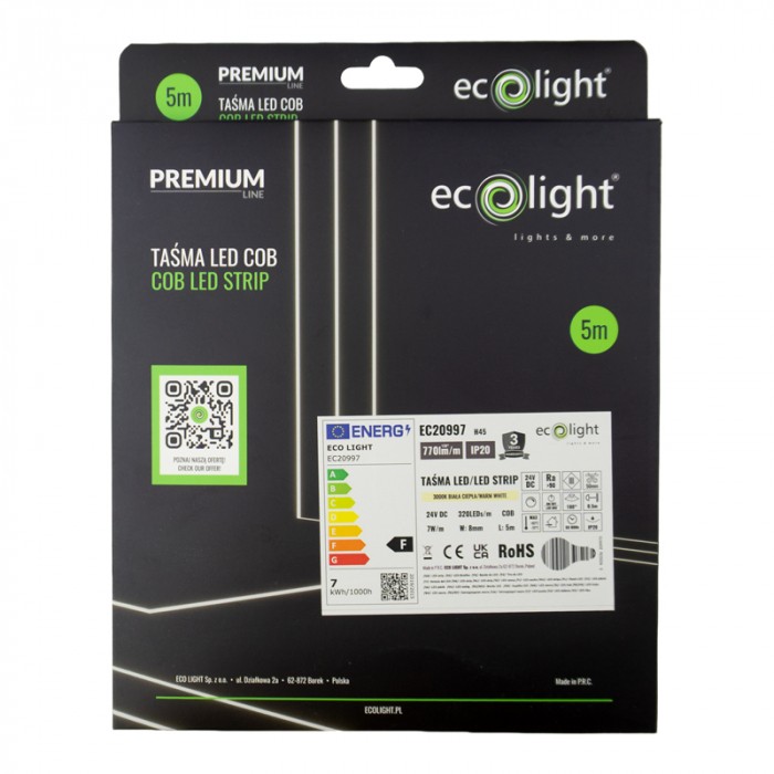 COB technológia zabezpečuje homogénne svetlo bez bodového efektu, vyšší komfort pre oči a profesionálny vizuálny výsledok. V kombinácii s vysokým CRI je ideálny aj do priestorov, kde záleží na vernom podaní farieb – napríklad v kuchyni alebo pri osvetlení dekoračných prvkov.