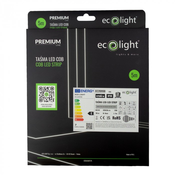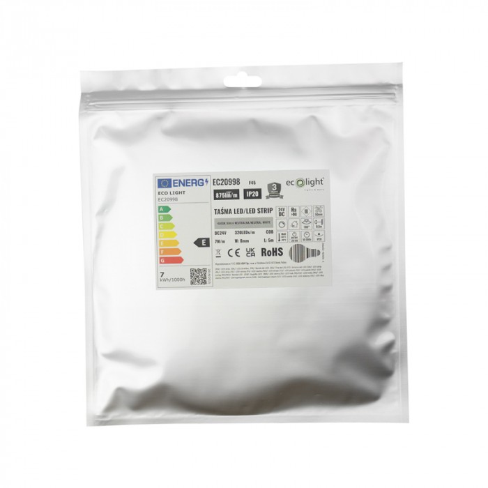 Vďaka šírke iba 8 mm je pásik vhodný aj do úzkych hliníkových profilov. Dĺžka balenia je 5 metrov a pásik je možné rezať každých 5 cm, čo umožňuje presné prispôsobenie konkrétnemu projektu.