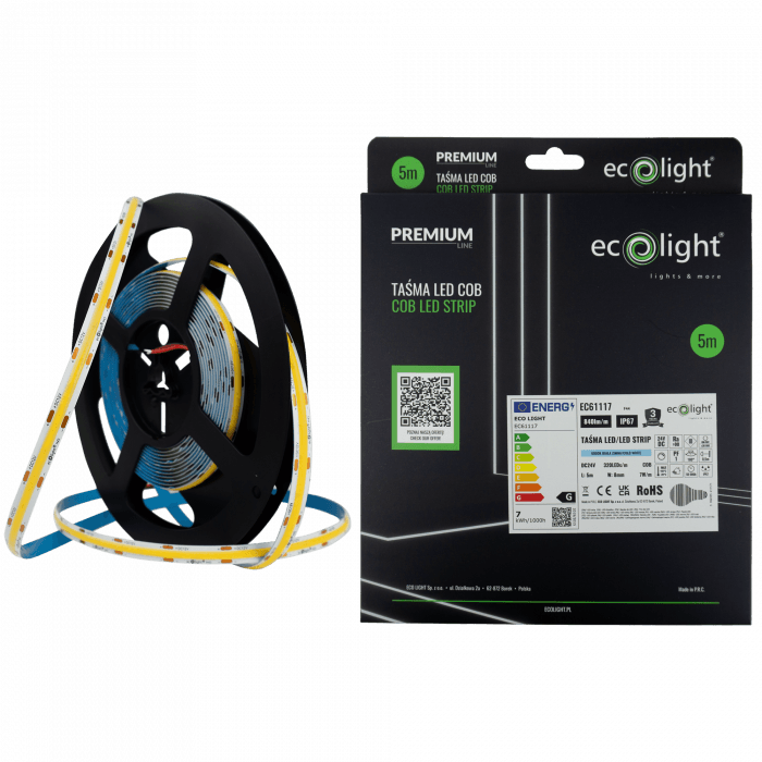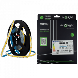 COB technológia (Chip On Board) zabezpečuje vysokú hustotu LED diód – až 320 diód na meter. Výsledkom je homogénne svetlo bez prerušovaných svetelných bodov, čo je výhodné najmä pri dekoratívnom osvetlení alebo pri montáži do hliníkových LED profilov.