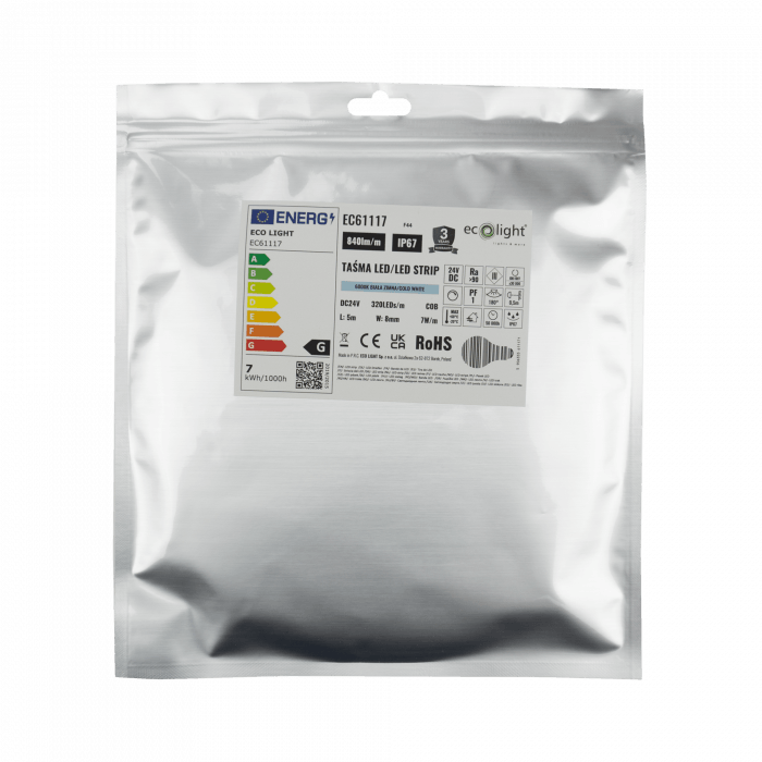 LED pásik je vybavený vysokým stupňom krytia IP67, čo znamená veľmi dobrú ochranu proti prachu a vode. Vďaka tomu je vhodný nielen do interiéru, ale aj do náročnejších podmienok v exteriéri – napríklad na osvetlenie terás, altánkov, pergol, fasád alebo záhradných prvkov.