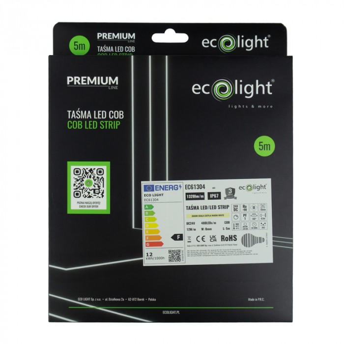 LED pásik je napájaný bezpečným napätím 24 V DC, ktoré zabezpečuje stabilnú prevádzku aj pri dlhších inštaláciách. Vysoká hustota 480 LED diód na meter zaručuje dokonale plynulý svetelný efekt bez prerušovania.
