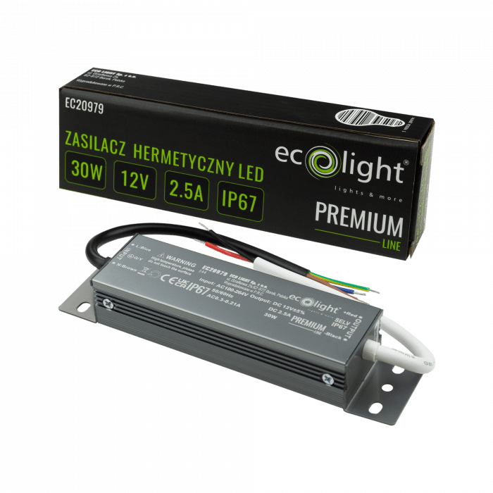 PRÉMIOVÝ hermetický napájací zdroj s výkonom 30 W a výstupným napätím 12 V DC je navrhnutý pre bezpečné a stabilné napájanie LED osvetlenia a ďalších elektronických zariadení. Vďaka kvalitnej konštrukcii a vysokému stupňu ochrany IP67 je vhodný pre vnútorné aj vonkajšie použitie. Bez problémov odoláva vlhkosti, prachu, dažďu aj náročnejším pracovným podmienkam.