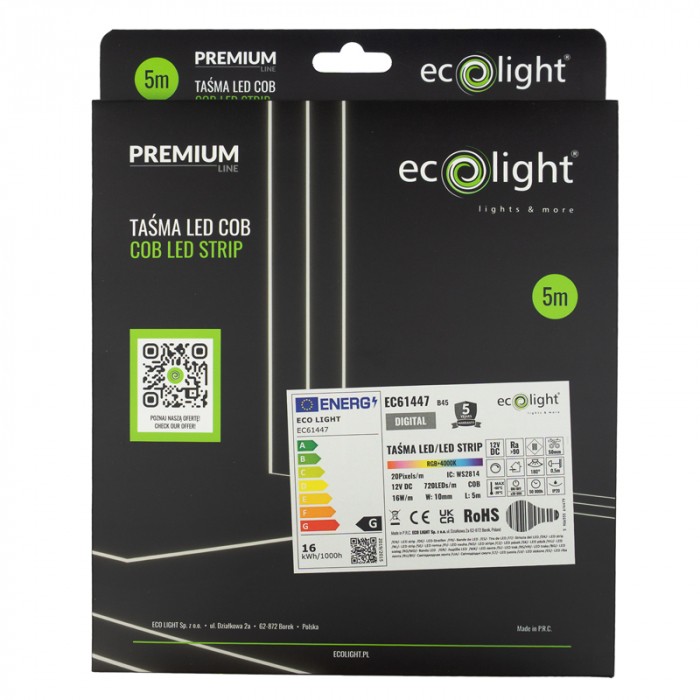 LED pásik COB DIGITAL predstavuje moderné riešenie osvetlenia pre náročných používateľov, ktorí požadujú maximálnu kvalitu svetla, vysokú hustotu diód a pokročilé možnosti digitálneho riadenia. Vďaka technológii COB (Chip On Board) obsahuje až 720 LED diód na meter, čo zabezpečuje dokonale súvislé svetlo bez viditeľných bodov – ideálne pre esteticky náročné aplikácie.