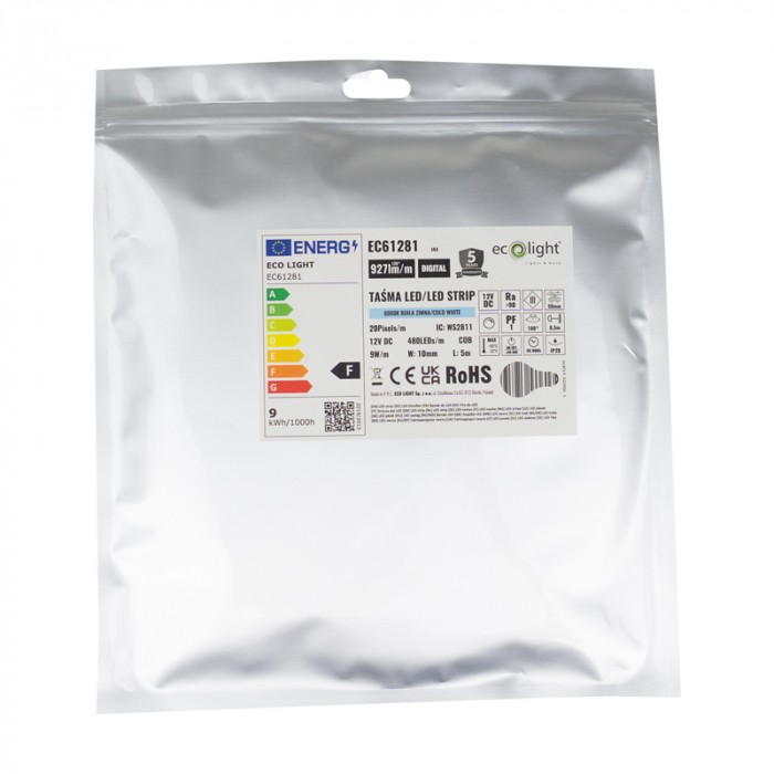 Výkon 9W na meter ponúka optimálny pomer medzi spotrebou energie a svetelným výkonom. Svetelný tok približne 855 lm/m zabezpečí dostatočné osvetlenie bez zbytočnej spotreby. Pásik je napájaný bezpečným napätím 12V DC, čo ho robí vhodným aj pre použitie v domácnostiach.
