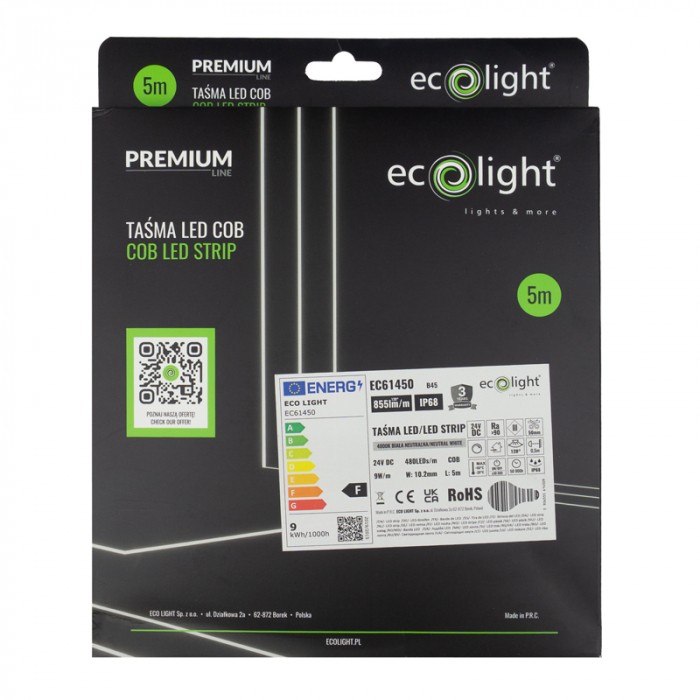 - Vysoký svetelný výkon – až 855 lm/m pri nízkej spotrebe 9 W/m