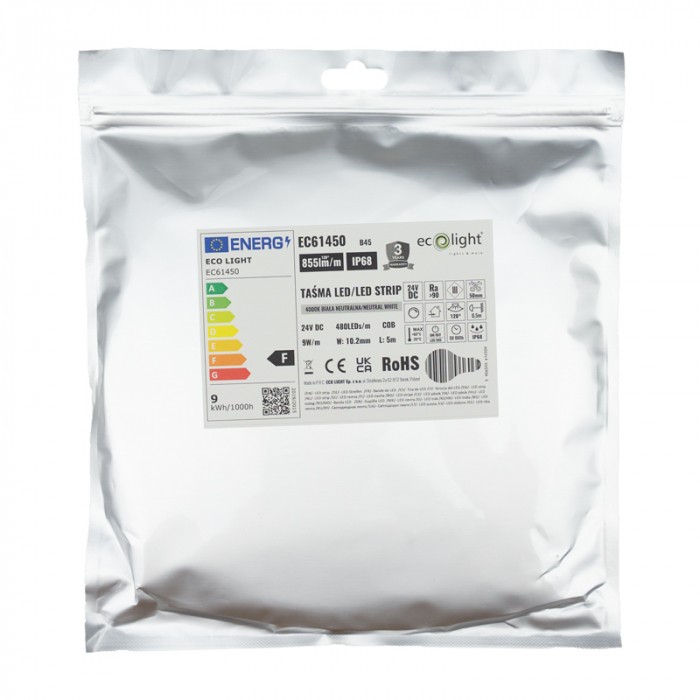 Neutrálna biela farba svetla (4000K) je univerzálna – neťahá do žlta ani do modra, čo ju robí ideálnou pre obytné aj pracovné priestory. Vysoký stupeň krytia IP68 zaručuje úplnú odolnosť voči vode, vlhkosti a prachu, takže pásik je vhodný nielen do interiéru, ale aj do náročných vonkajších podmienok.