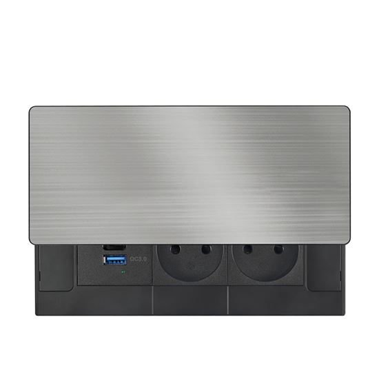 Tento elegantný vstavaný zásuvkový blok predstavuje moderné a praktické riešenie napájania priamo vo vašom pracovnom stole, kuchynskej linke alebo kancelárskej zostave. Kombinuje klasické elektrické zásuvky s výkonným USB nabíjaním, vďaka čomu poskytuje maximálny komfort pri každodennom používaní domácich aj pracovných zariadení.