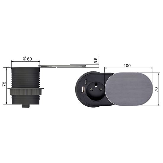 Táto moderná vstavaná zásuvka predstavuje praktické a elegantné riešenie napájania pre pracovné dosky, kancelárske stoly, kuchynské linky alebo nočné stolíky. Kombinuje klasickú sieťovú zásuvku 230 V s výkonným USB nabíjaním (USB-A a USB-C), čím umožňuje pohodlné napájanie aj nabíjanie zariadení bez potreby ďalších adaptérov.