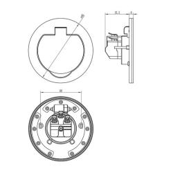 Viečko zásuvky sa otvára až do uhla 130°, čo výrazne uľahčuje manipuláciu s káblami a zároveň znižuje namáhanie pántov. Integrovaná pružina zabezpečuje automatické zatváranie.