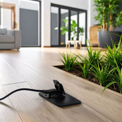 Diskrétny dizajn zásuvky nenarúša celkový vzhľad podlahy a harmonicky zapadne do materiálov ako drevo, dlažba či betón. Ideálne riešenie všade tam, kde chcete zachovať čistý vzhľad bez viditeľných elektroinštalácií.
