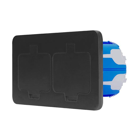 Súčasťou balenia je inštalačná krabica s gumovými priechodkami, ktoré zvyšujú odolnosť proti vlhkosti. Montáž je jednoduchá a nevyžaduje špeciálne náradie. Zásuvka je určená na zabudovanie do podlahy, steny alebo nábytku, pričom nie je kompatibilná so štandardnými krabicami typu KU68.