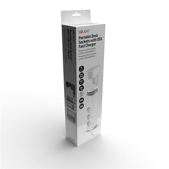 Prenosná stolná zásuvka Solight predstavuje praktické a elegantné riešenie napájania pre moderné pracovné aj domáce prostredie. Je navrhnutá tak, aby poskytovala maximálny komfort pri používaní bez nutnosti zásahu do nábytku. Vďaka šikovnému upínaciemu systému ju jednoducho pripevníte na hranu stola alebo pracovnej dosky – rýchlo, bezpečne a bez vŕtania.