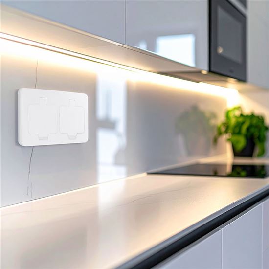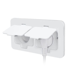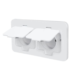 Zásuvka disponuje krytím IP55, čo znamená ochranu proti prachu a striekajúcej vode. Vďaka dvojitému gumovému tesneniu je vnútorná konštrukcia účinne chránená pred vlhkosťou aj nečistotami. Bez problémov zvládne mokré čistenie a je vhodná aj do exteriéru – napríklad na terasy, do altánkov, garáží či dielní.