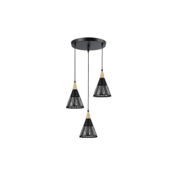 Závesná lampa Hira E27 x3 čierna + okrúhle drevo