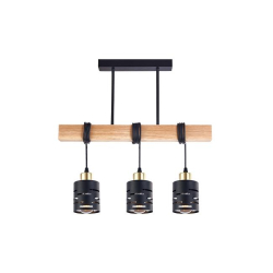 Moderná závesná lampa Elen x3 v elegantnom prevedení čierna, zlatá a dekor dreva (WD) predstavuje štýlové osvetlenie vhodné do moderných aj industriálnych interiérov. Kombinácia kovového tela s dekorom dreva dodáva svietidlu príjemný dizajnový vzhľad, ktorý perfektne doplní kuchyňu, jedáleň, obývaciu izbu, barový pult, reštauráciu alebo modernú kanceláriu.